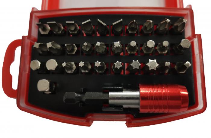 Kärjet 25 mm CrV6150, 30 kpl, SL 3 - 4 - 4.5 - 5 - 5.5 - 6, PH 0 - 1 - 2*2 - 3*2, PZ 0 - 1 - 2 - 3, H 3 - 4 - 4.5 - 5 - 5.5 - 6, T 10 - 15 - 20 - 25 - 30 - 40, S1 - S2, 25 mm adapteri kärkipidin