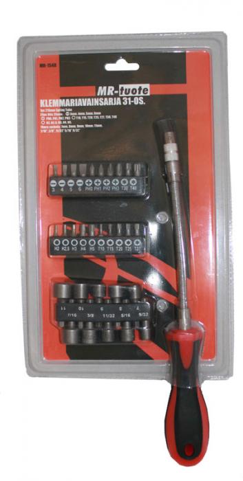 Joustavavartinen klemmariavain täydennettynä laajalla valikoimalla hylsyjä sekä konekärkiä.