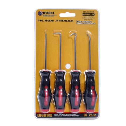 Koukku ja piikkisarja, pituus 155mm, 4-osainen. Sarja sisältää täysikoukun, kulmakoukun, 90°asteen koukun ja suoranpiikin.