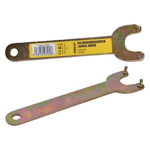 Finbullet kulmahiomakoneen laikka-avain on kestävä ja yleismallinen. Kulmahiomakoneen laikka-avaimen materiaalina on käytetty sinkittyä Cr-V terästä.