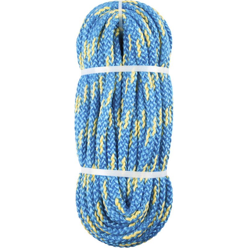 Karkeapintainen 16-päinen kaksoispalmikoitu polypropeeniköysi on kelluva ja säänkestävä. Köydessä on kolme keltaista merkkisäiettä. Yleisköysi, joka soveltuu erinomaisesti kiinnittämiseen, rakentamiseen, nostamiseen ja sitomiseen. Polypropeeni on helppo sitoa ja pleissata. Hyvä yleisköysi useaan erilaiseen käyttötarkoitukseen. Auringonkestoluokka 3/5. Köyden lujuus putoaa puoleen noin kolmessa vuodessa voimakkaassa UV-säteilyssä. Nipussa 12mm keltasinistä propeenia on 15 metriä köyttä. Vetomurtolujuus 1910kg.