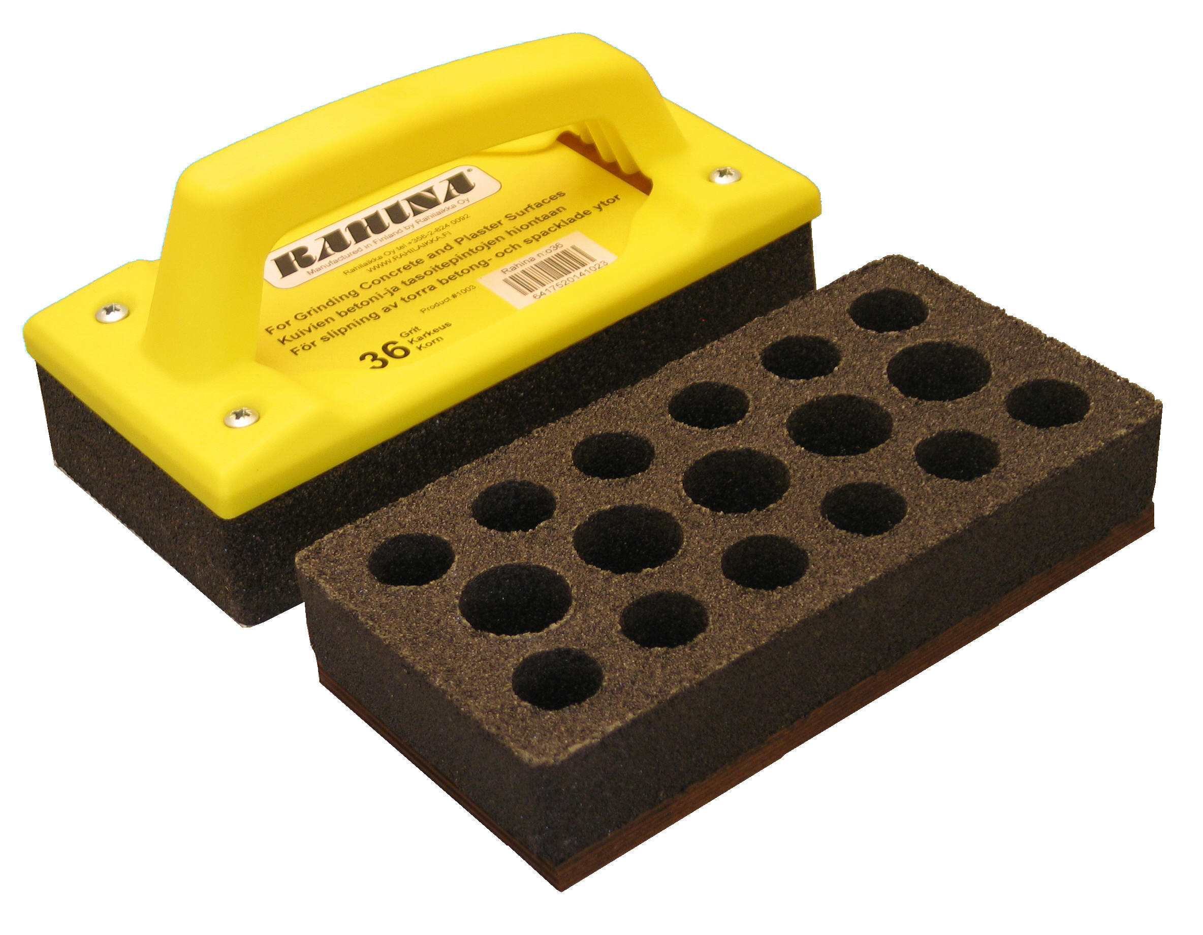 Kahvallinen käsihiomakivi betonipurseiden hiontaan.