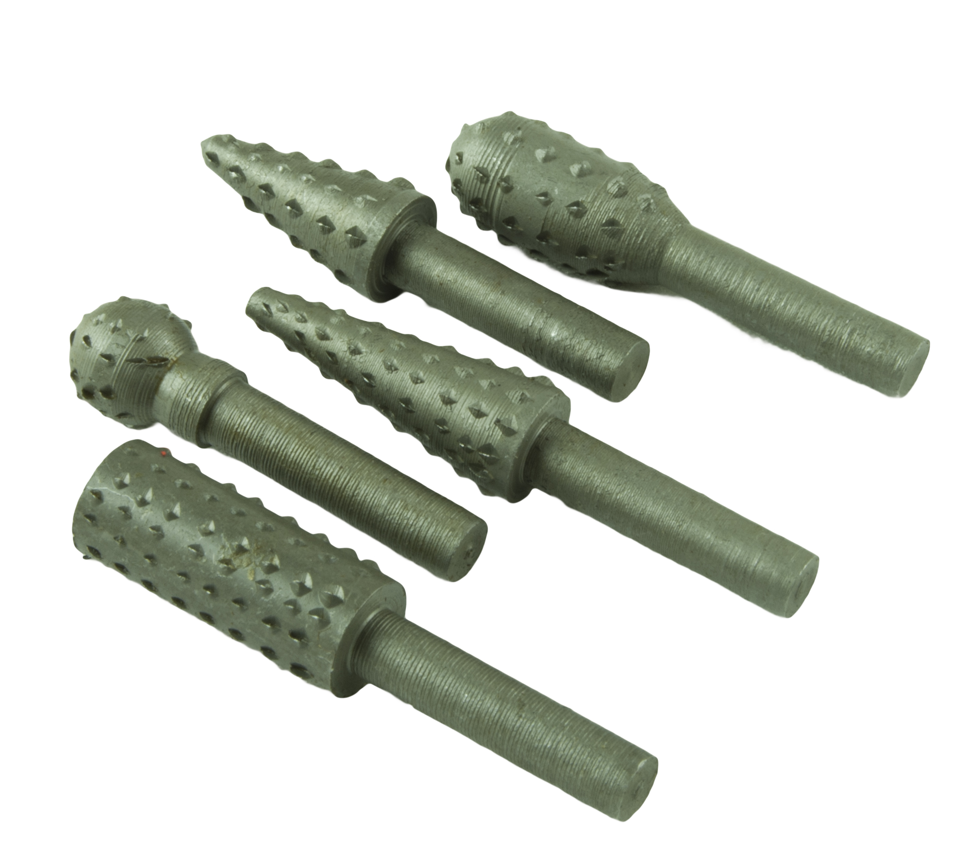 Porakoneeseen sopiva raspisarja puulle. Raspisarjan avulla voidaan muotoilla sekä jyrsiä puuta. Sisältää viisi erimuotoista raspiterää.