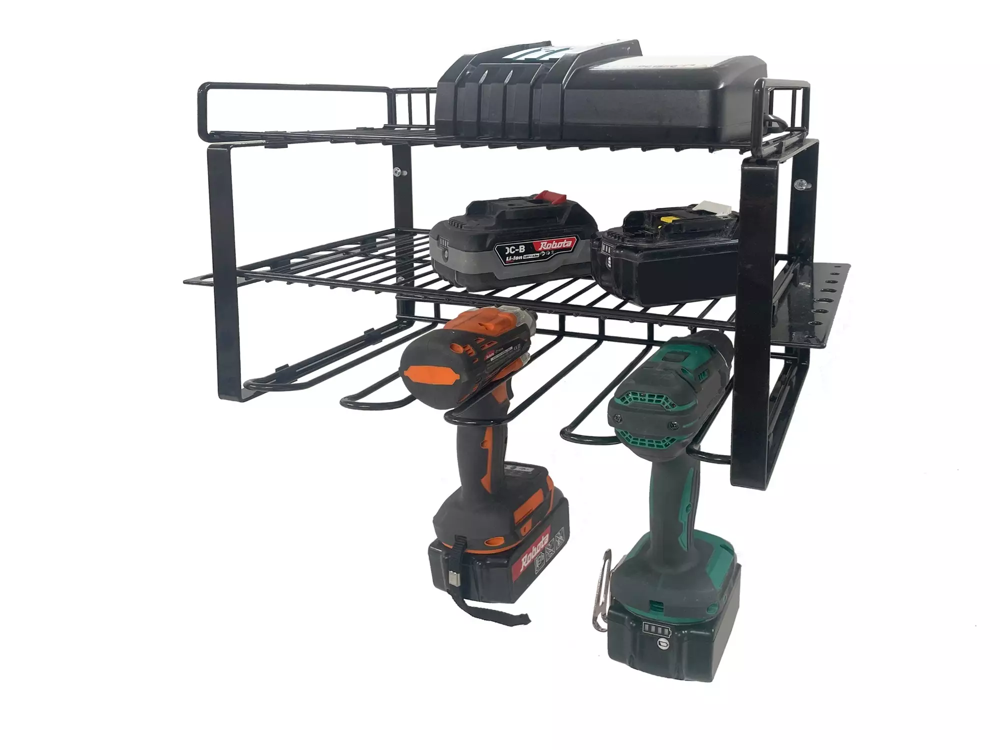 Robota akkuporakonehylly 3-tasoinen on kätevä ja siisti ratkaisu akkuporakoneiden, akkujen ja muiden tarvikkeiden säilyttämiseen työtilassa. Kun työkalut ovat omilla paikoillaan, ne löytyvät nopeasti ja työskentely on sujuvampaa – eikä akut tai porakoneet pyöri enää lattialla tai pöydän kulmalla.