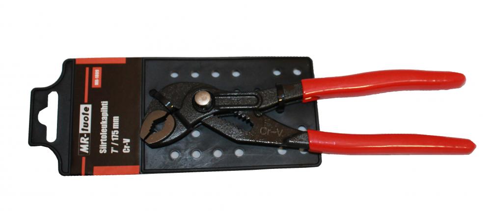 SIIRTOLEUKAPIHTI 175mm 7" Vahvat, Cr-V -teräksestä valmistetut siirtoleukapihdit kätevällä painonappilukituksella. Painonappilukitus lisää pihtien käyttömukavuutta ja parantaa siirtoleukapihtien käyttöturvallisuutta. Lukituksella saadaan estettyä pihdin tahaton liukuminen nivelissä. Monipuoliseen käyttöön sopivat liukunivelpihdit ovat kätevä työkalu muun muassa LVI-asennuksissa sekä auton korjaus- ja huoltotöissä. Korkealaatuisten papukaijapihtien pituus on 175 mm.