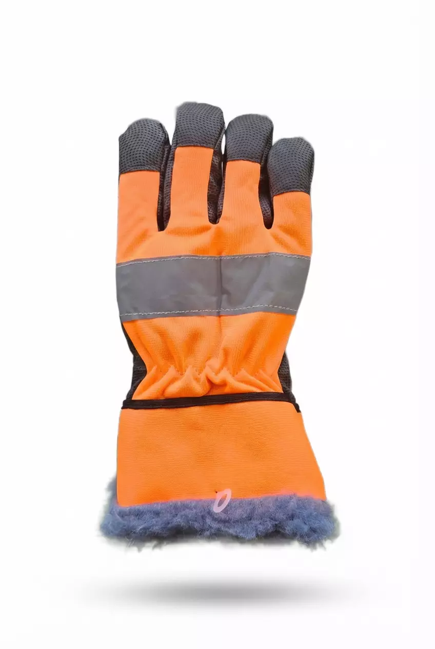 Synteettinen käsine teddyvuorella – lämmin, näkyvä ja kestävä valinta talven töihin. 🦺❄️