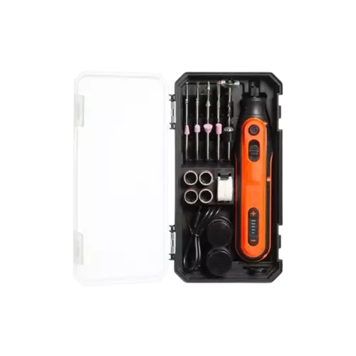 Ladattavaa pienoisporaa ja monitoimityökalua voi käyttää esimerkiksi leikkaukseen, hiontaan, jyrsintään, kiillotukseen ja poraukseen. Erinomainen setti monipuoliseen käyttöön. Mukana tulee yhteensä 101 erilaista tarviketta.