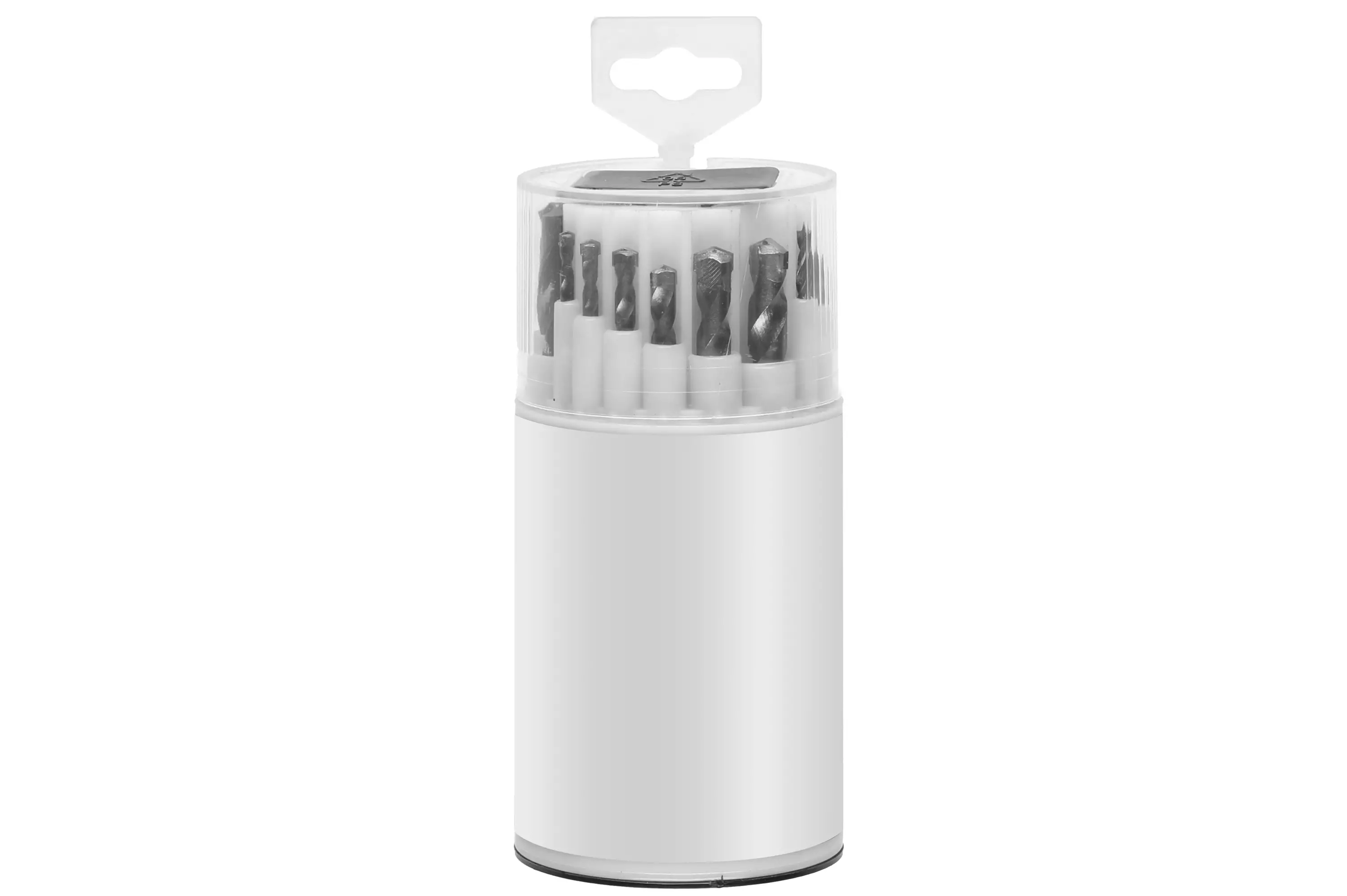 Poranteräsarja kätevässä revolverirasiassa. Metalliporanterät: 3, 4, 5, 6, 8, 10 (mm). Kiviporanterät: 3, 4, 5, 6, 8, 10 (mm). Puuporanterät: 3, 4, 5, 6, 8, 10 (mm). Metalliporanterät HSS4241/ kiviporanterät hiiliteräs C45 ( YG8 kovametallikärki)/ puuporanterät hiiliteräs C45. Takuu 1 vuosi.