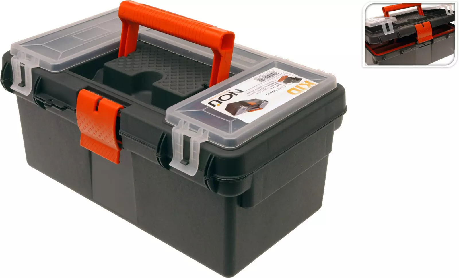 Työkalupakki 16x36x19 cm Oranssi/Musta, Läpinäkyvällä Osastokotelolla