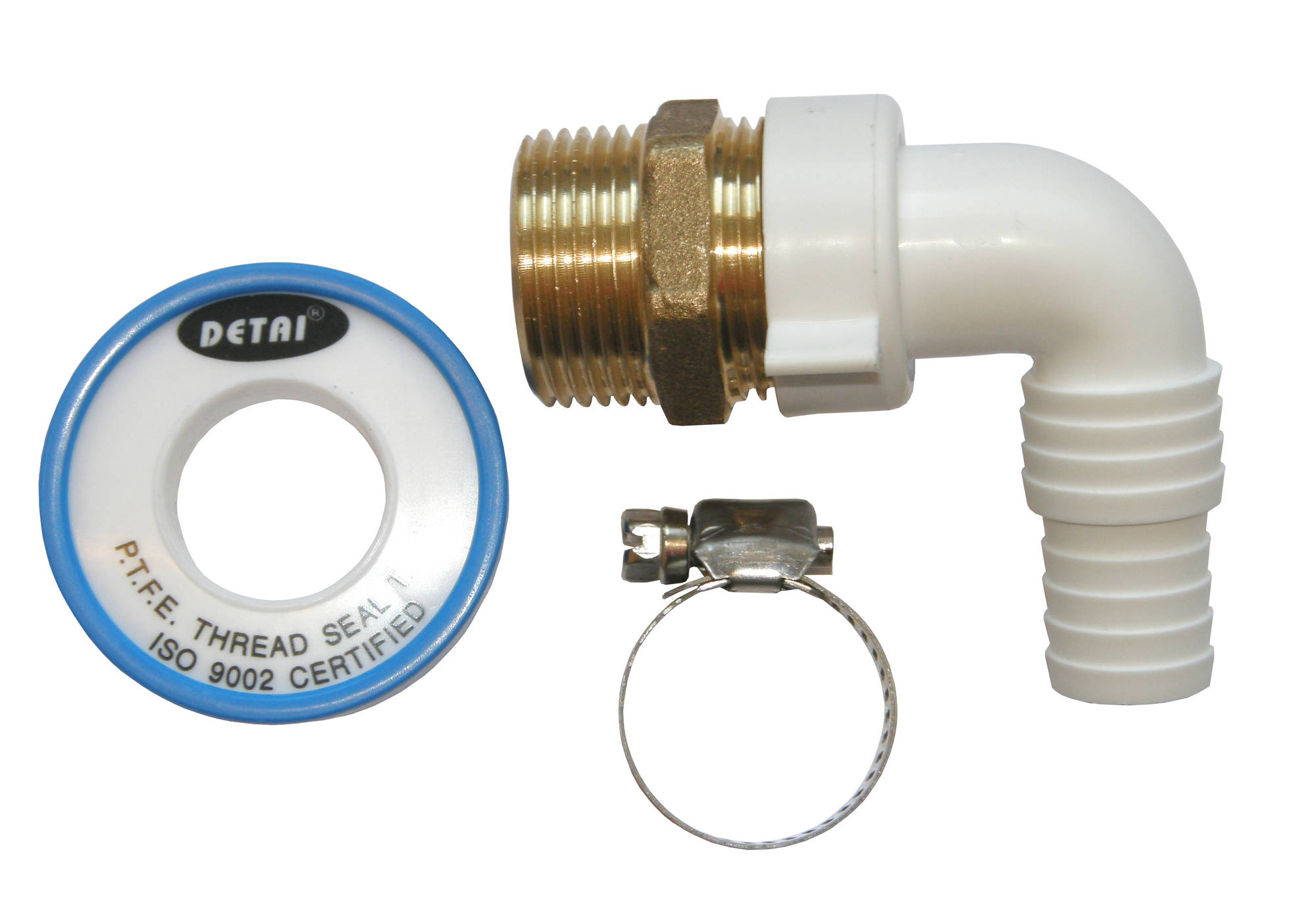 Vesiautomaatin lähtösetti sisältää kulmaputken, letkunkiristimen ja putkiteipin.