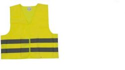 keltainen heijastinliivi autoon tai työmaalle, mukana säilytyspussi.
