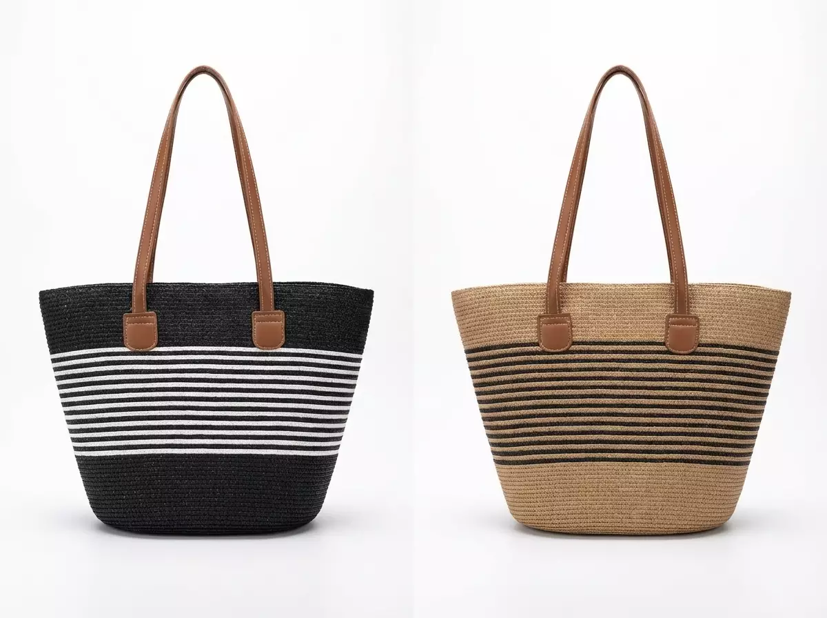 Tyylikäs ja kevyt kesälaukku arkeen, rannalle tai lomareissulle. Laukku on valmistettu punotusta paperinarusta ja siinä on tukevat keinonahkaiset kantokahvat. Ajaton raidallinen design sopii monenlaisiin asukokonaisuuksiin.