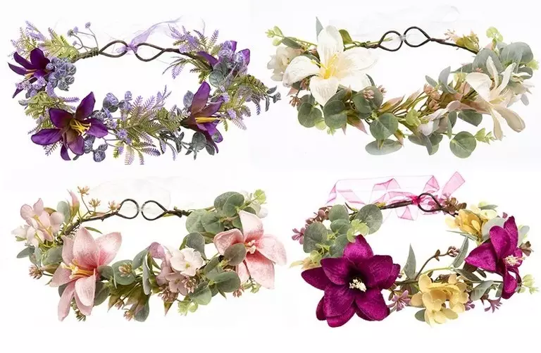 Upea kukkaseppele 24 cm tuo romanttista ja boheemia tunnelmaa juhliin, festareille ja kesän tapahtumiin. Hieman suurempi, noin 24 cm halkaisijainen seppele istuu kauniisti hiuksiin ja viimeistelee asukokonaisuuden näyttävästi.