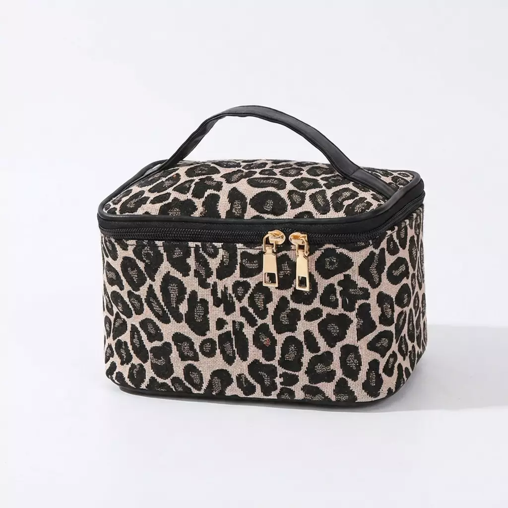 Kun haluat meikeillesi tyylikkään ja toimivan säilytysratkaisun – lisää leopardikuvioinen meikkilaukku 21 × 14 × 12 cm ostoskoriin ja pidä kosmetiikka aina järjestyksessä. 💄✨