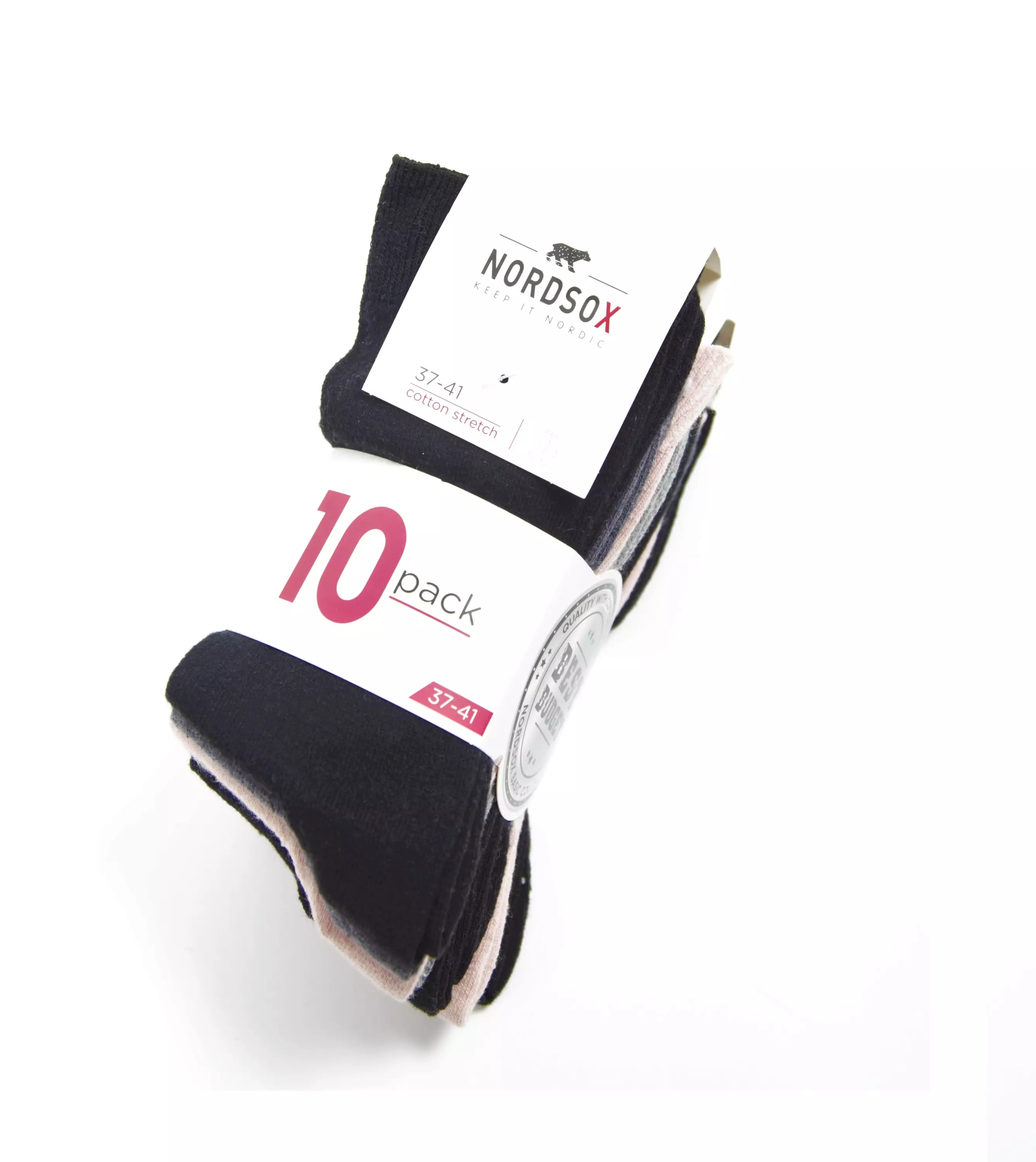 Pakkauksessa 4 paria mustia, 2 paria vaaleanpunaisia, 2 paria vaaleanharmaita ja 2 paria tummanharmaita sukkia