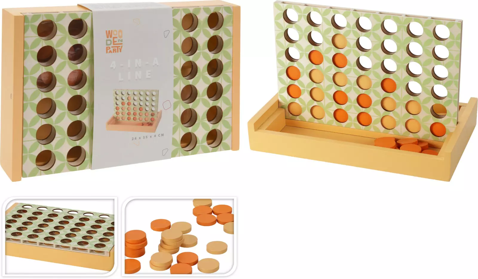 4 rivissä, lautapeli, puinen peli, perhepeli, strategiapeli, peli lapsille, älypeli, värikkäät pelimerkit, viihde
