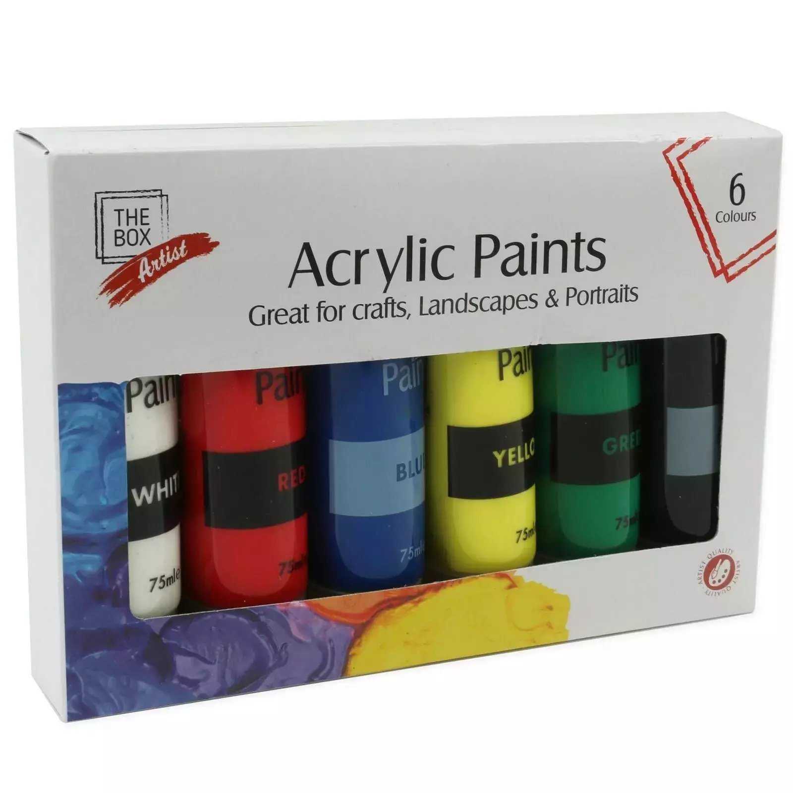 Monipuolinen akryylimaalisarja, joka sisältää kuusi eläväistä väriä: punainen, keltainen, valkoinen, vihreä, sininen ja musta. Soveltuu erinomaisesti erilaisiin taide- ja askarteluprojekteihin, kuten maisemiin, muotokuviin ja sekatekniikkaan.