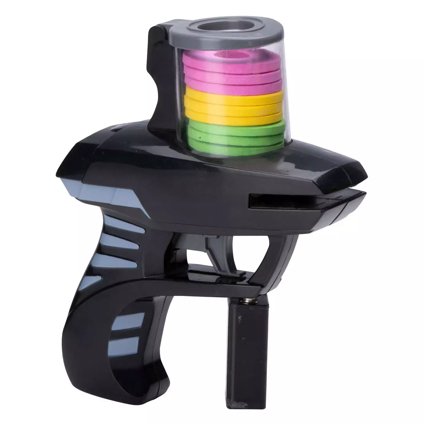 Hauska ja turvallinen kiekkoase, joka ampuu kevyitä vaahtomuovisia kiekkoja. Sopii mainiosti niin sisä- kuin ulkoleikkeihin ja tarjoaa vauhdikasta tekemistä yli 6-vuotiaille lapsille.