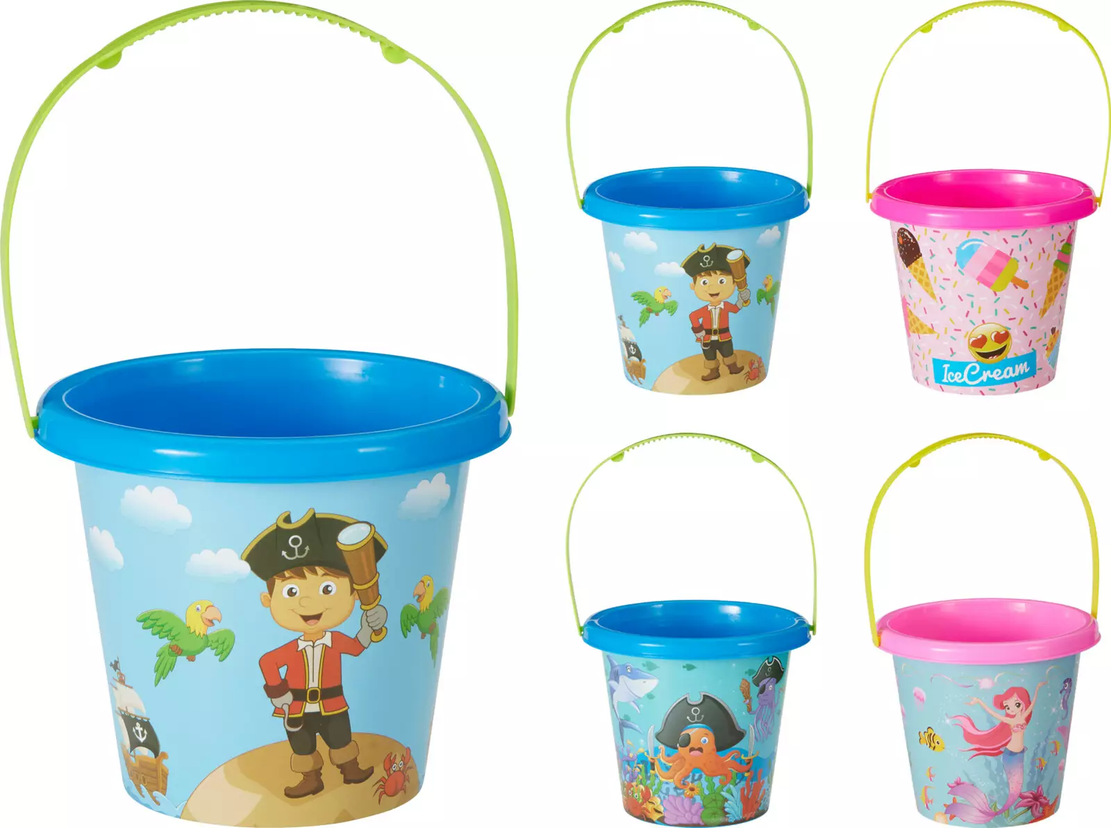 Kevyt ja sopivan kokoinen ämpäri rantaleikkeihin ja hiekkalaatikolle. Hauskat kuosit innostavat leikkiin.