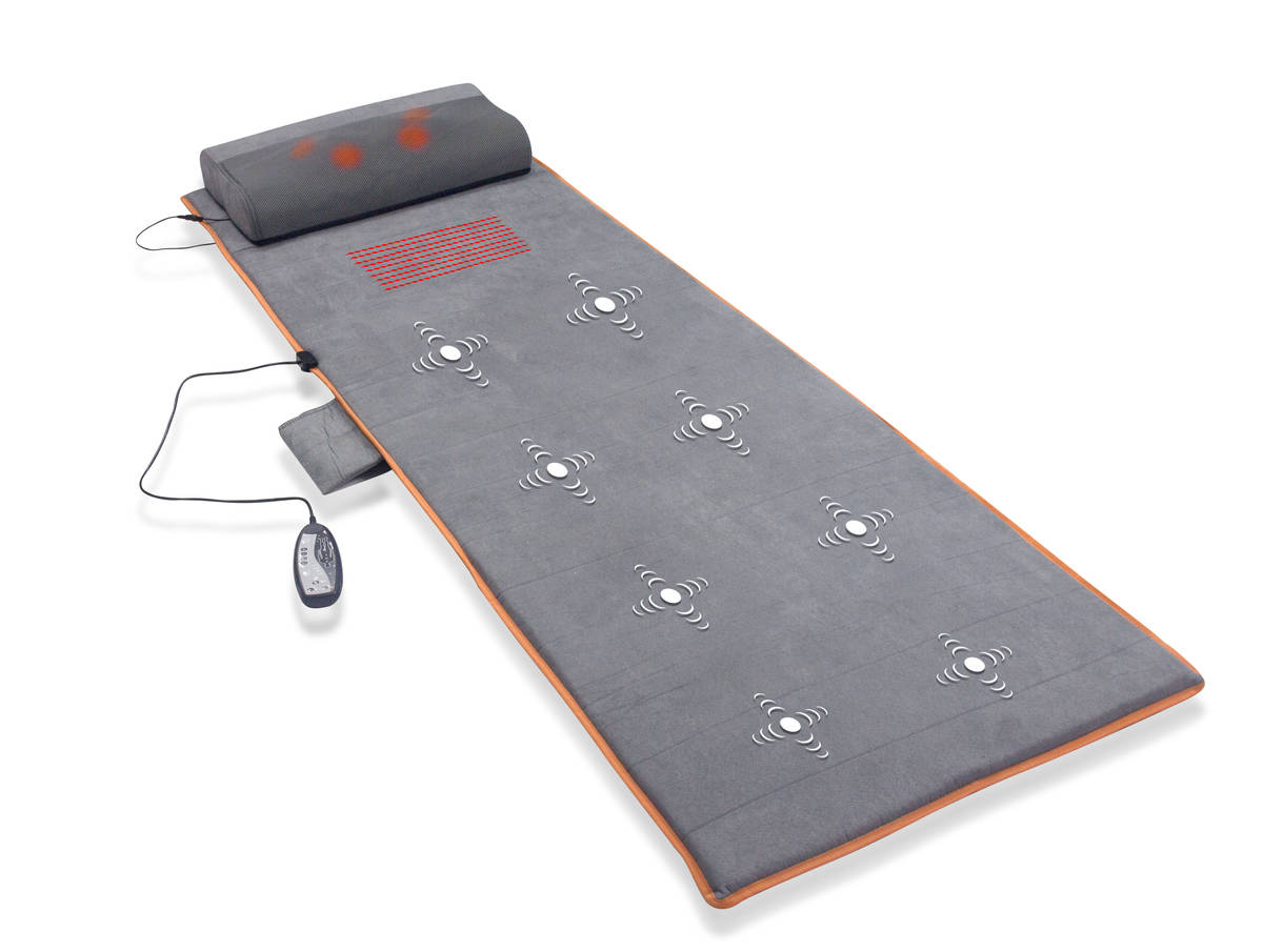 Todella miellyttävä, helppokäyttöinen hierontamatto, jonka päällä pääsee nopeasti rentoutumaan kiireisen päivän päätteeksi. Matossa on pehmeä tyyny, jossa on eriksen 4 hieromapäätä sekä infrapunalämmitys. Makuualustassa on neljällä alueella 8 värinämoottoria, jotka hierovat ja rentouttavat käyttäjän. Hieromamaton saa toimimaan neljällä eri hierontaohjelmalla, ja jokaisen maton alueen saa toimimaan halutessa itsenäisesti. Maton hierontavoimakkuutta saa myös säädettyä 3 eri voimakkuudelle.