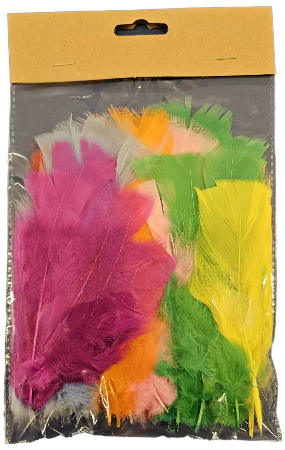 Monikäyttöiset koristehöyhenet askarteluun, somistamiseen ja kausikoristeluun. Pakkauksessa noin 45 kpl höyheniä, joiden pituus on noin 15 cm ja mukana taivutettava rautalanka kiinnitystä varten. Kevyt ja helppo käyttää esimerkiksi pääsiäiskoristeisiin, kukka-asetelmiin tai käsitöihin.
