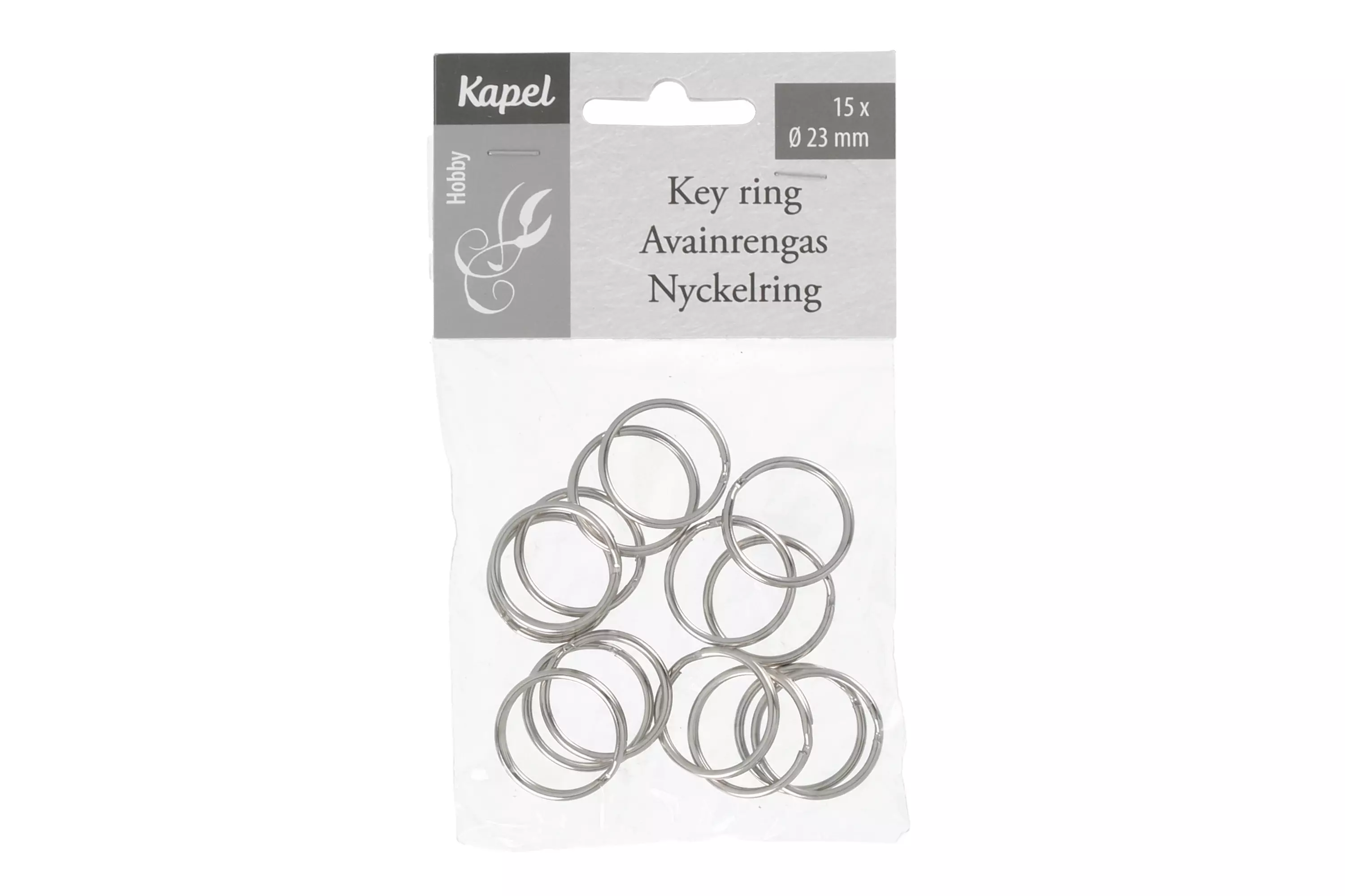 Metallinen avainrengas omien persoonallisten avaimenperien valmistamiseen. Halkaisija 23 mm.
