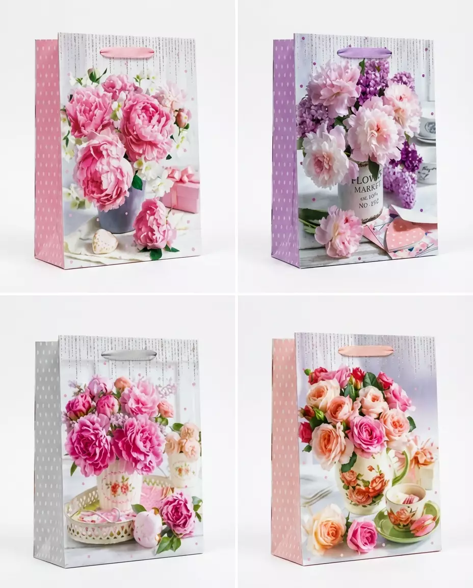 Tyylikäs kukkakuvioinen lahjakassi tekee lahjan antamisesta entistä näyttävämpää. Kauniit kukkakimppukuosit ja pehmeät värit tuovat lahjaan juhlavuutta ja sopivat erinomaisesti esimerkiksi syntymäpäiville, äitienpäivään, valmistujaisiin tai muihin juhlatilaisuuksiin.