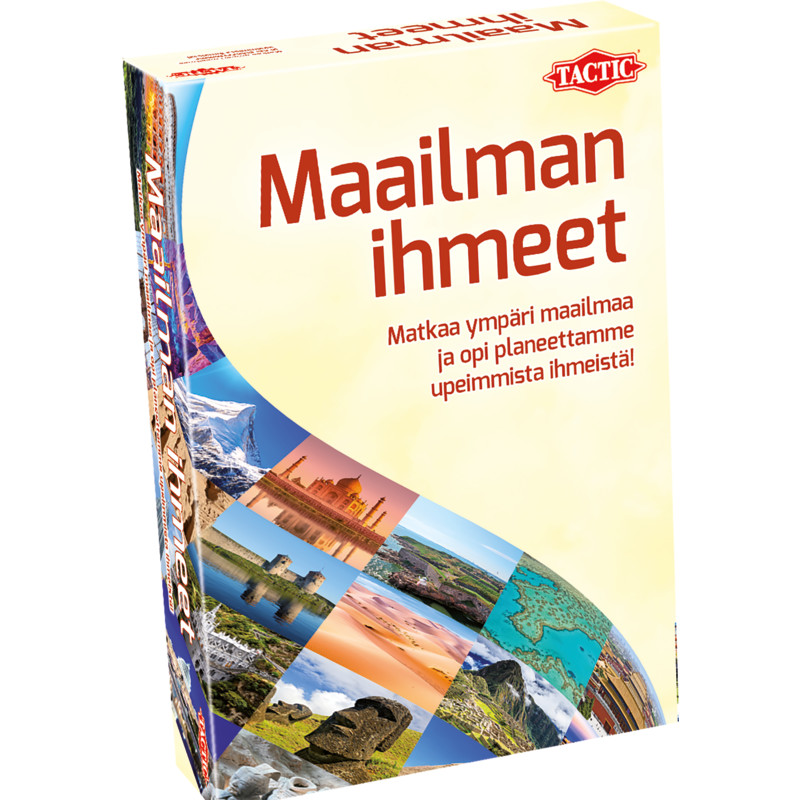 Matkusta ympäri maailmaa ja tutustu planeettamme uskomattomimpiin kohteisiin! Yritä pelivuorollasi tunnistaa maailman kuuluisat ihmeet ja sijoittaa ne oikeisiin maanosiin. Ellet arvaa ihmettä oikein, vihjeet auttavat sinua keksimään oikean vastauksen! Peli sisältää 195 ihmettä kaikista maailman kolkista sekä kartan, johon kohteet on merkitty! Tämä oppimispeli on myös todella viihdyttävä. Kätevä, kompakti koko! Ikäsuositus: 8+ v. Pelaajien määrä: 2-6. Pelin kesto: 20+ min.