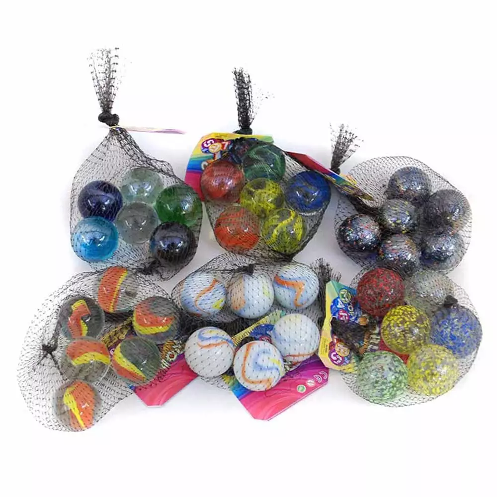 Nämä upeat, hieman suuremmat marmorikuulat tekevät vaikutuksen niin pelikentällä kuin keräilijöiden kokoelmissa. Kuulien kauniit värit ja näyttävät kuviot erottuvat selkeästi massasta – niiden avulla olet varmasti askeleen edellä, kun on aika pelata koulun pihalla tai kaveriporukassa.
