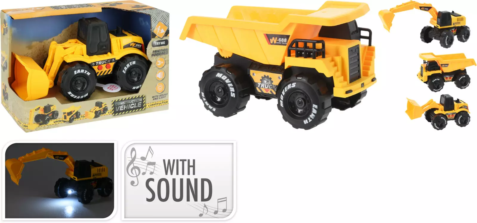 Tämä 15,5 cm:n työajoneuvo tarjoaa tuntikausia hauskaa leikkiä! Ajoneuvossa on valo- ja äänitehosteet, jotka lisäävät realistisuutta leikkiin. Sen kirkkaan keltainen väri tekee ajoneuvosta helposti tunnistettavan. Erityisen kestävä rakenne ja vahvat kitkanaruilla varustetut pyörät tekevät ajoneuvosta sopivan myös hiekkalaatikkoon. Paristot sisältyvät pakkaukseen, joten leikki voi alkaa heti!