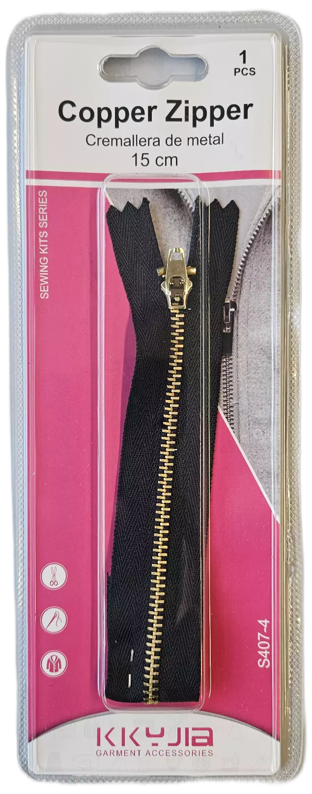 Laadukas 15 cm metallivetoketju sopii erinomaisesti housuihin, hameisiin, laukkujen ja pussukoiden suljentaan sekä muihin ompeluprojekteihin, joissa tarvitaan kestävää ja näyttävää vetoketjua. Metallihampaat tuovat vetoketjuun ryhtiä ja viimeistellyn ilmeen.